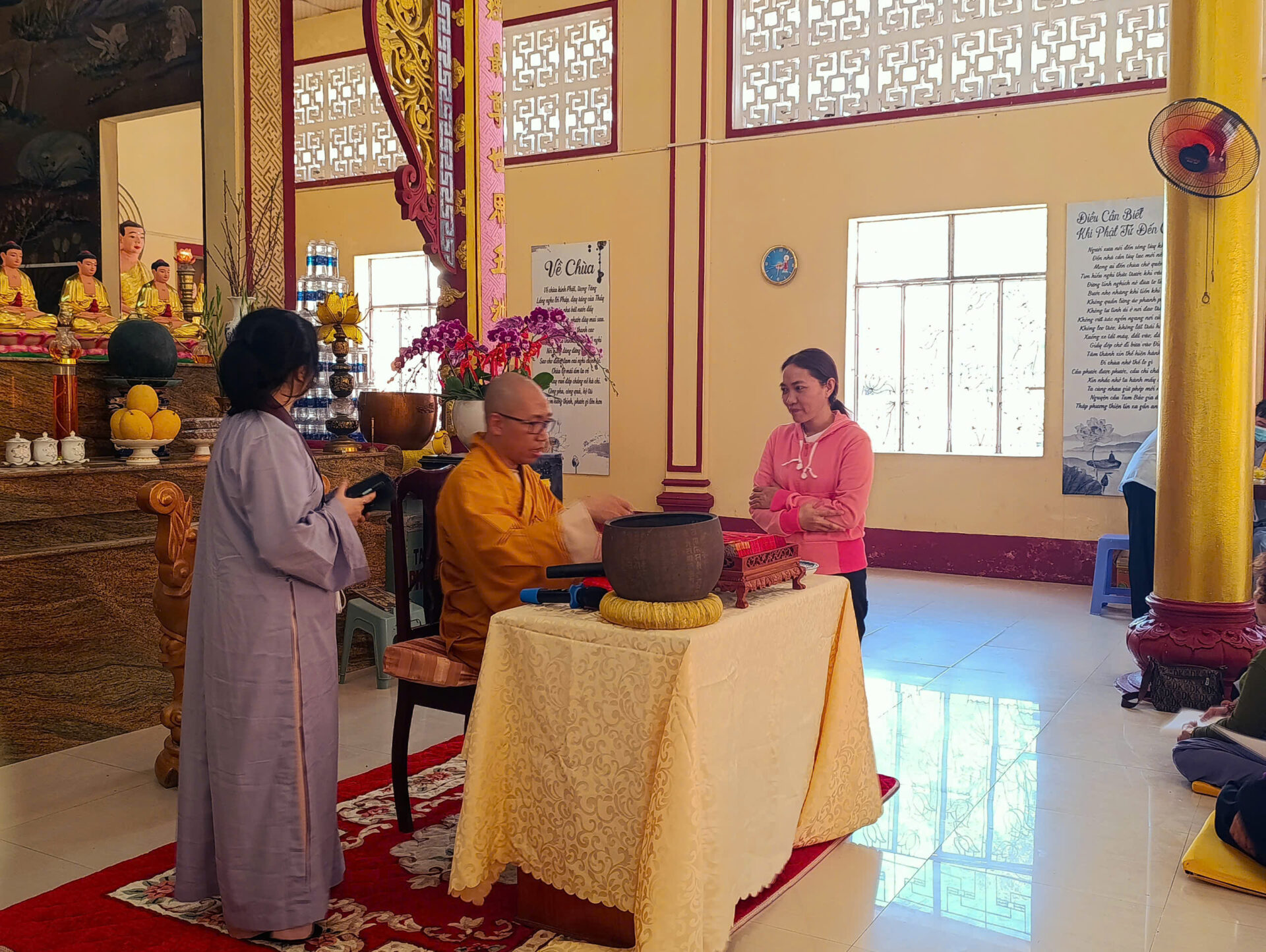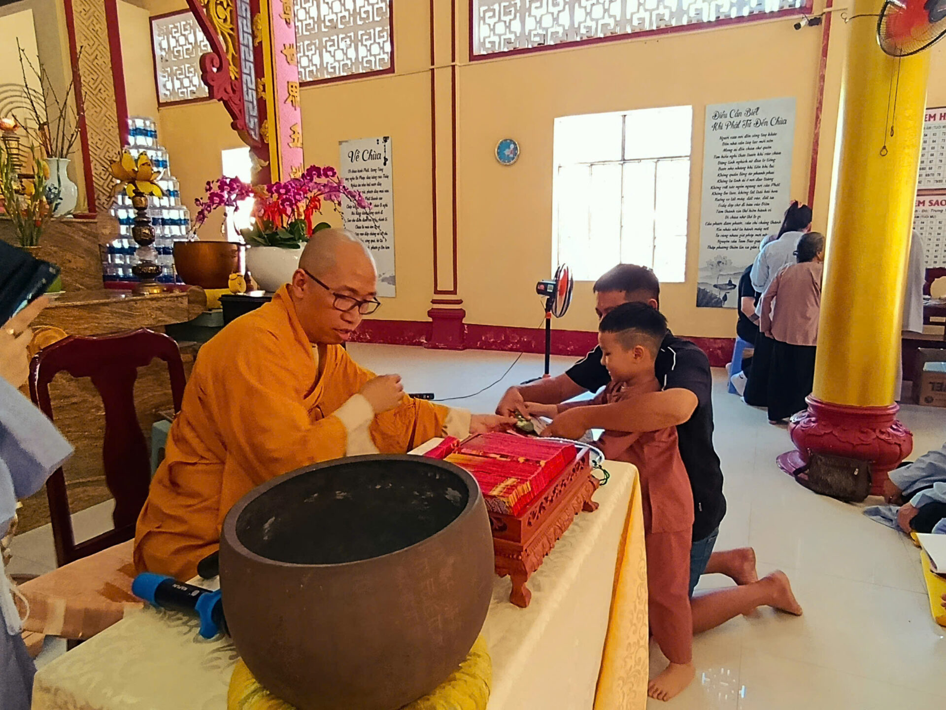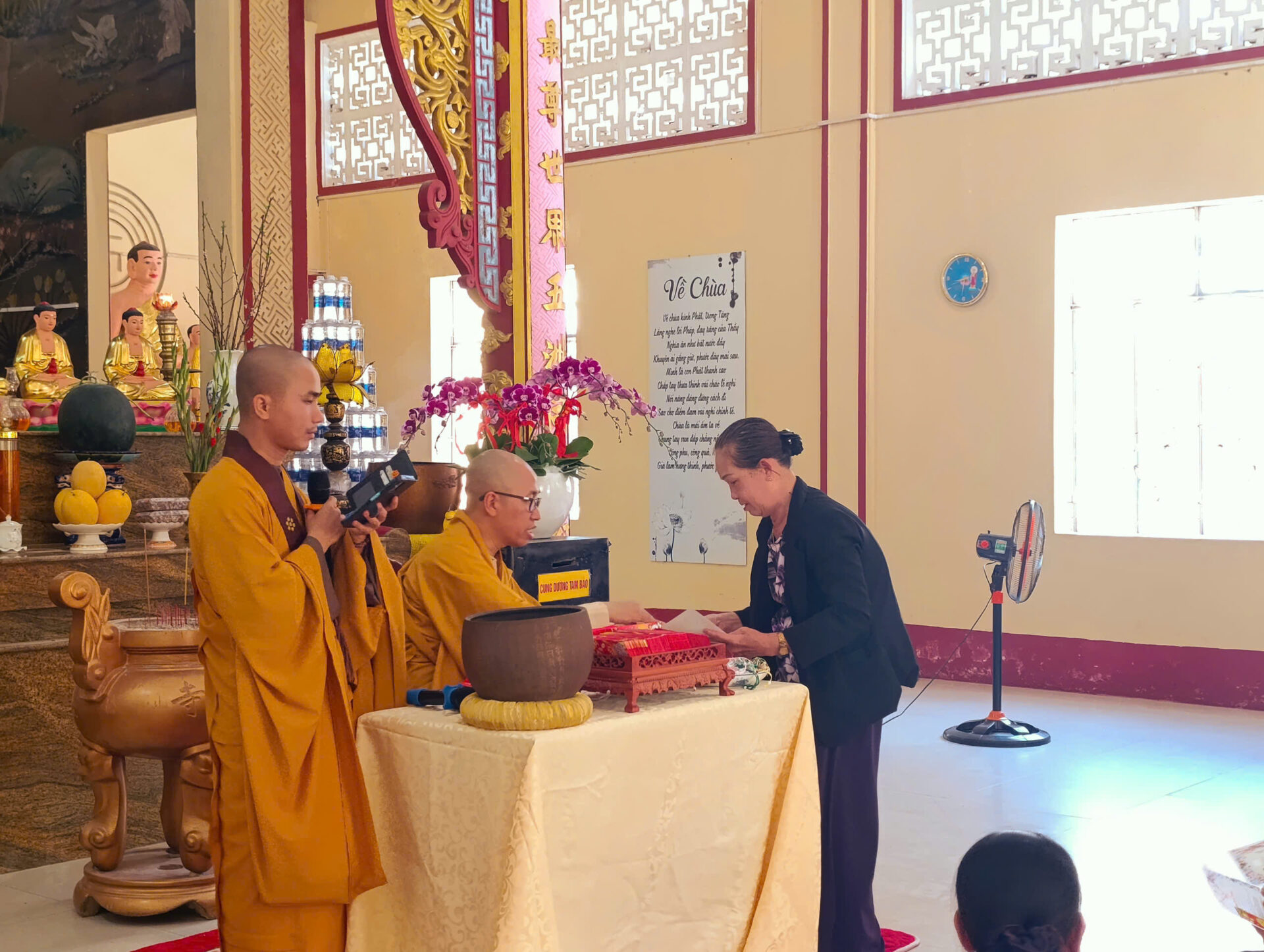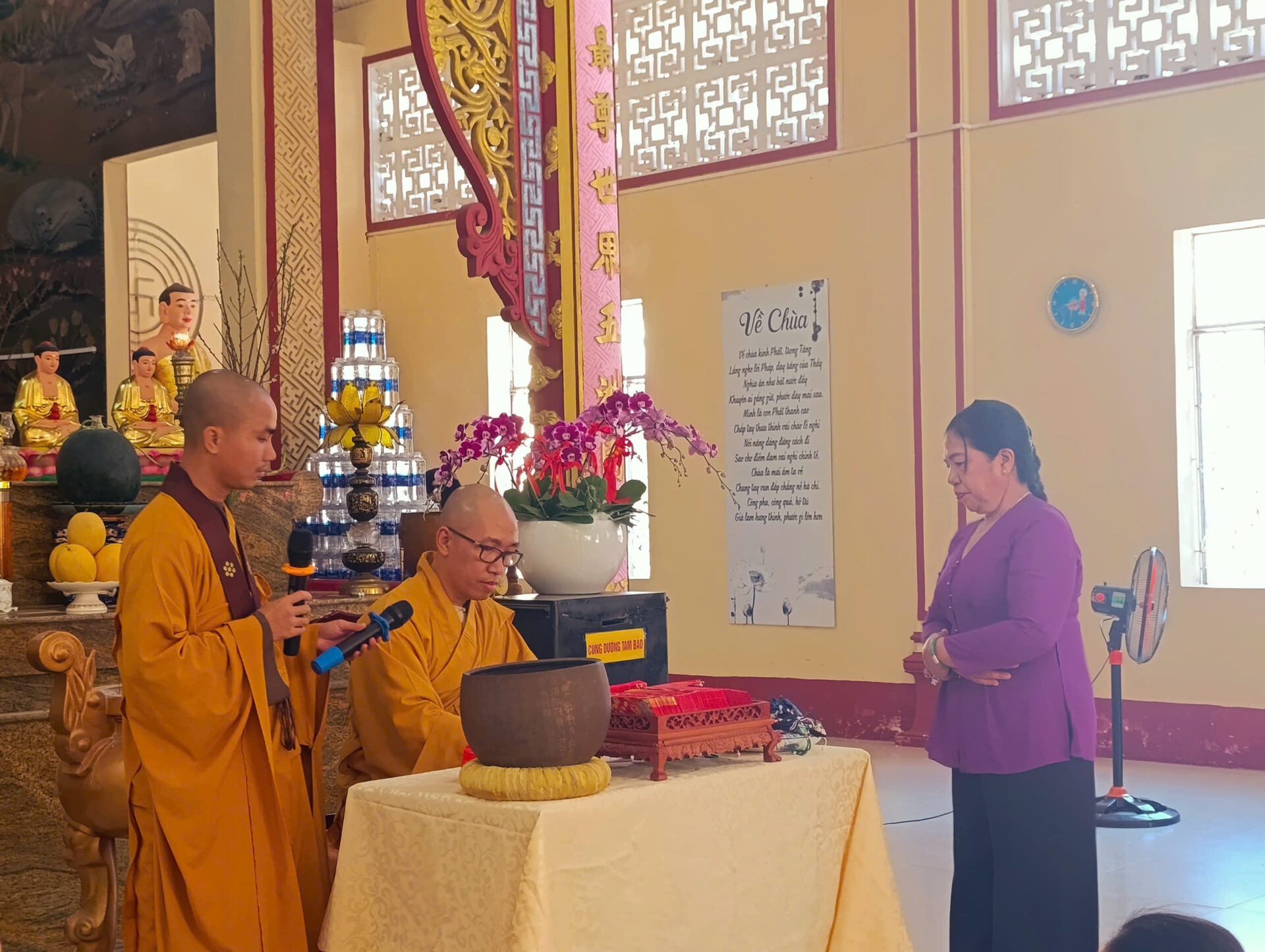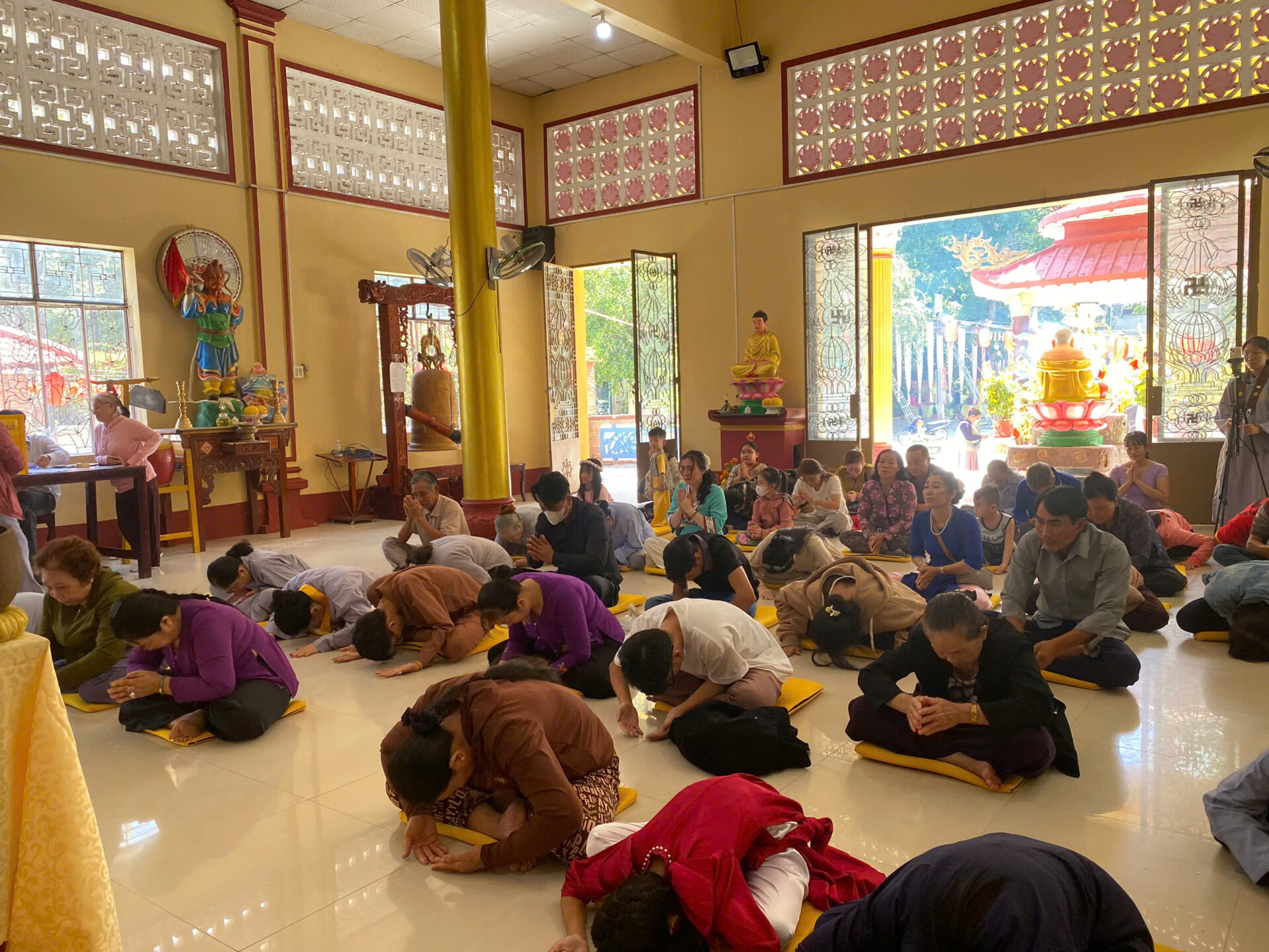 Bầu không khí đầu Xuân dường như vỡ òa trong niềm xúc động khi Sư phụ quang lâm bảo điện, ban bố nụ cười từ bi và những lời chúc Xuân ấm áp đến toàn thể đại chúng. Đặc biệt, ngay trong buổi sáng diệu kỳ này, một nhân duyên thù thắng đã hội đủ: hơn 20 thiện nam tín nữ đã phát bồ đề tâm, chính thức thọ nhận lễ Quy y Tam Bảo.