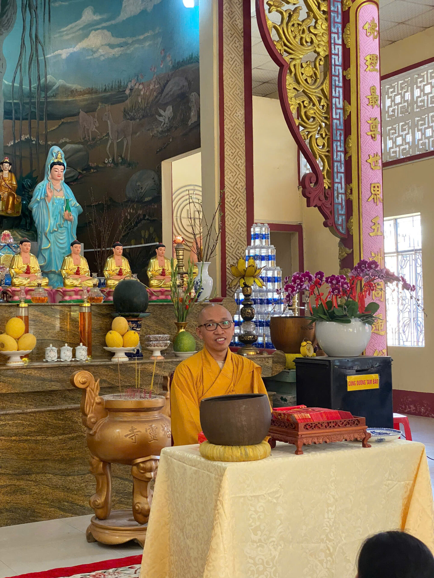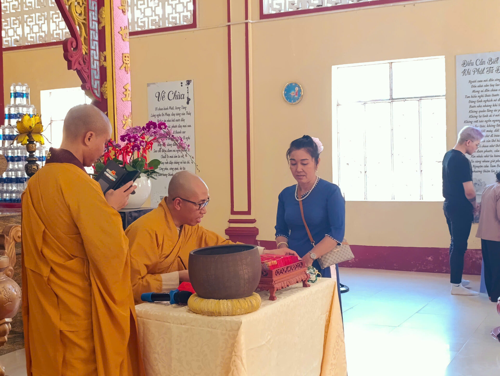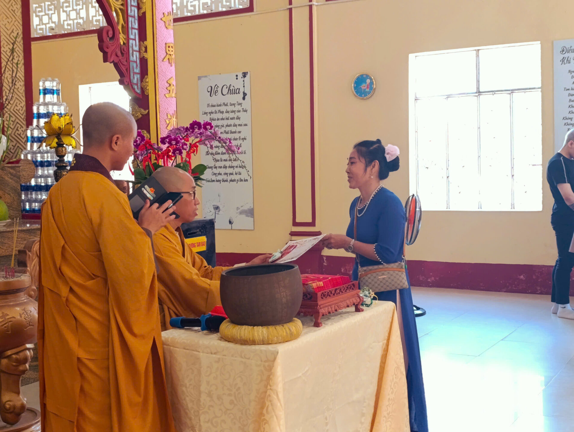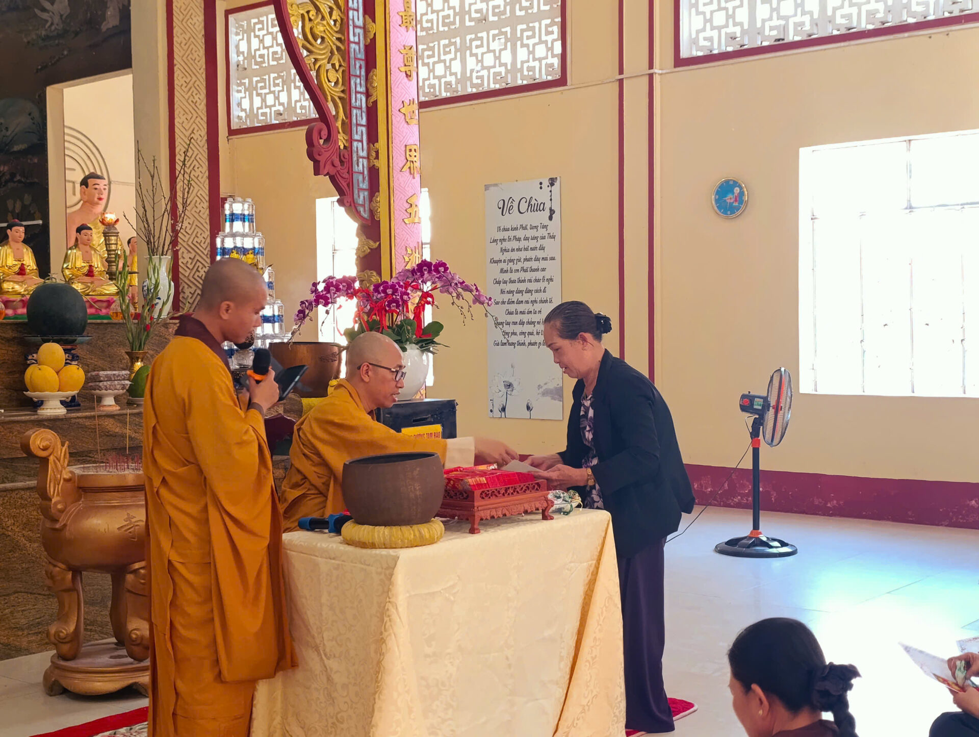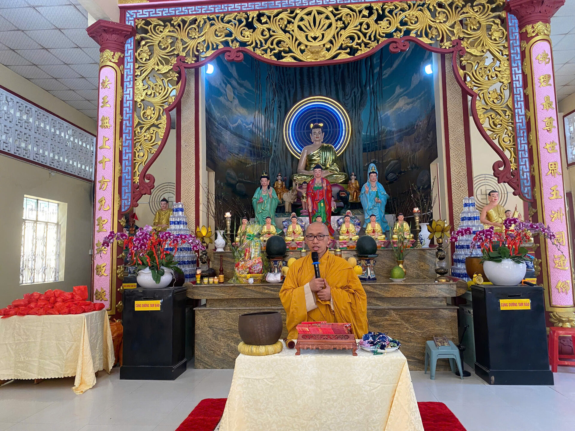 Bầu không khí đầu Xuân dường như vỡ òa trong niềm xúc động khi Sư phụ quang lâm bảo điện, ban bố nụ cười từ bi và những lời chúc Xuân ấm áp đến toàn thể đại chúng. Đặc biệt, ngay trong buổi sáng diệu kỳ này, một nhân duyên thù thắng đã hội đủ: hơn 20 thiện nam tín nữ đã phát bồ đề tâm, chính thức thọ nhận lễ Quy y Tam Bảo.