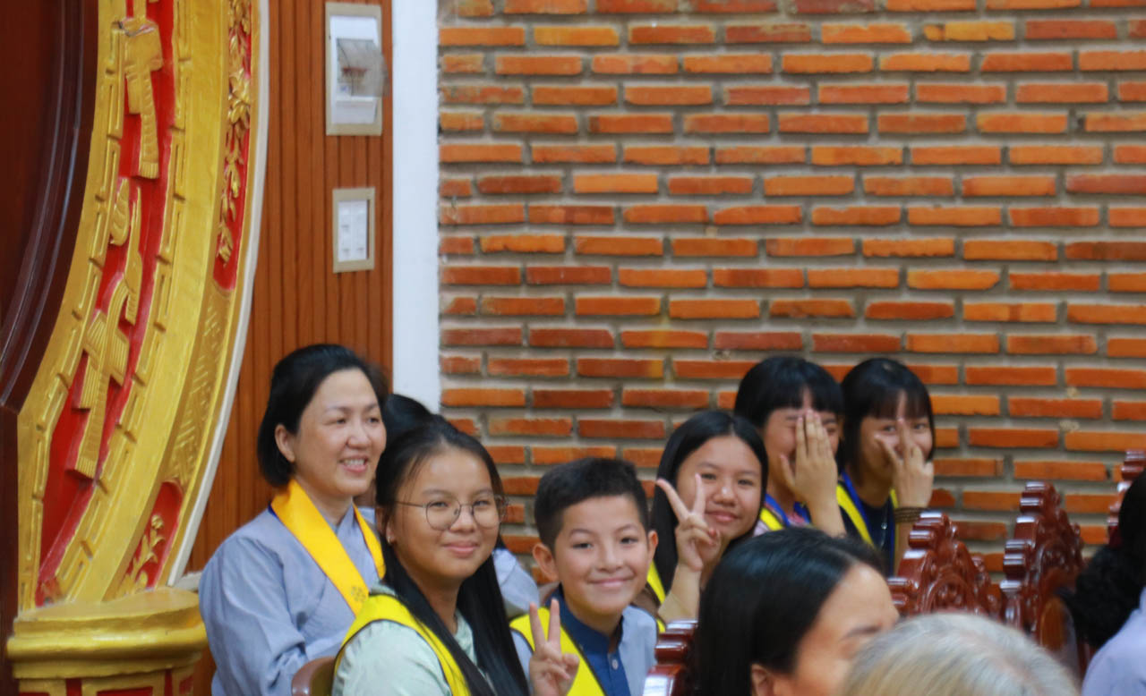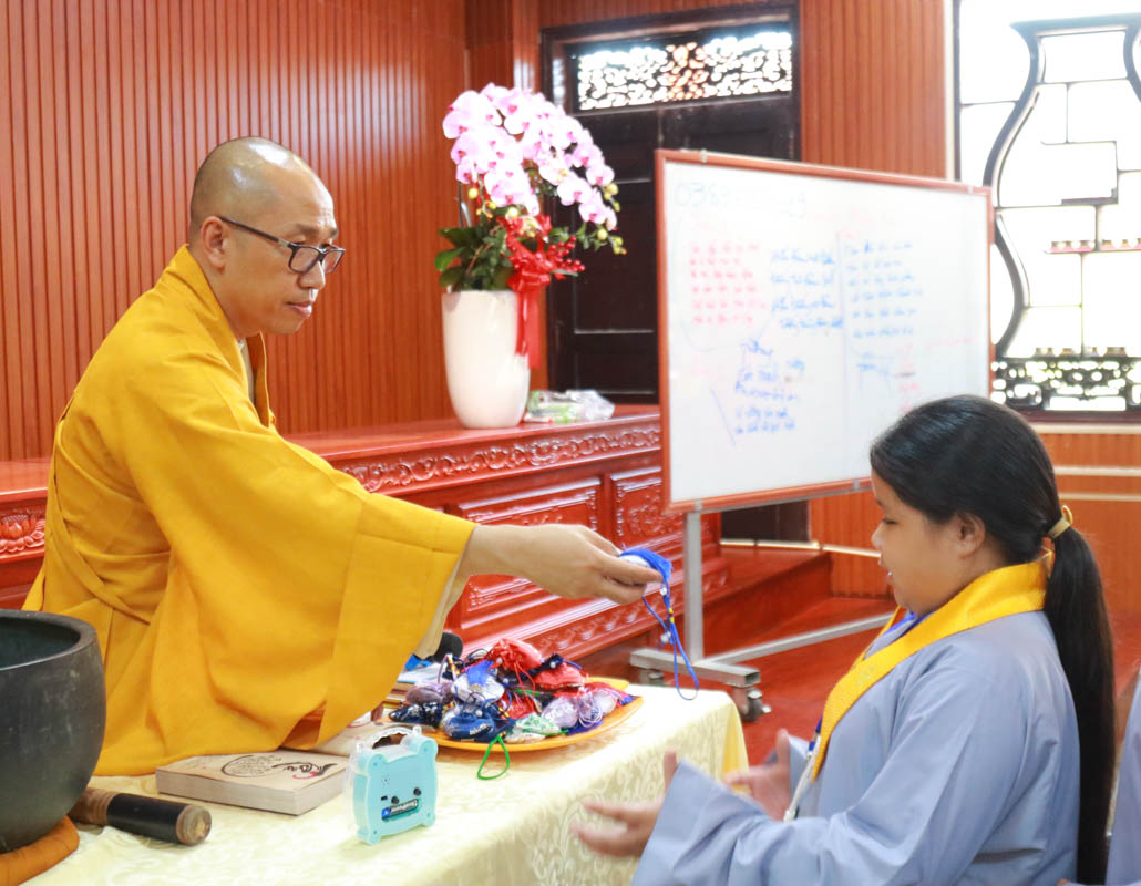 Không chỉ dừng lại ở phần giáo lý, Khóa tu còn trở nên sinh động và gần gũi qua hoạt động, chia sẻ cùng các em nhỏ đang tham gia Khóa học “Nâng cao nhận thức và rèn luyện kỹ năng sống”. Những phần quà ý nghĩa được trao tặng đã góp phần gieo duyên lành, nuôi dưỡng hạt giống thiện lành trong tâm hồn các em ngay từ khi còn nhỏ.